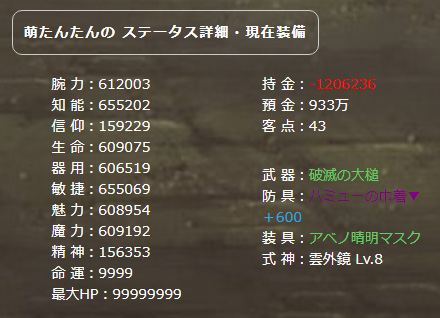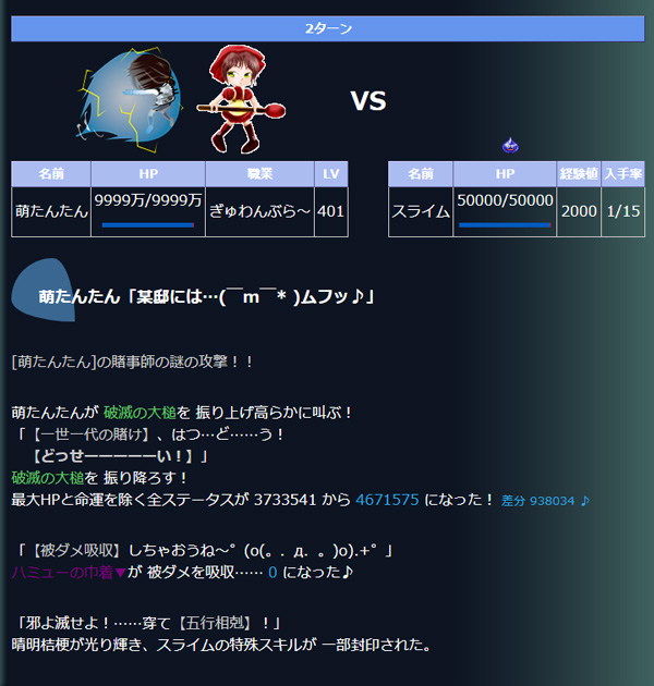 ・戦闘終了時のレベルアップ等のため、発動時には数値が多少違っております。