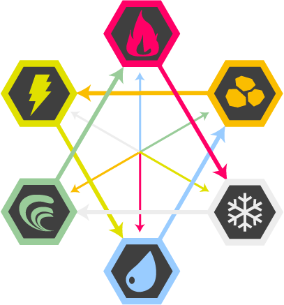 炎氷雷地光闇 に2属性「風」「水」が追加され、炎氷風雷水地光闇の8属性となりました。