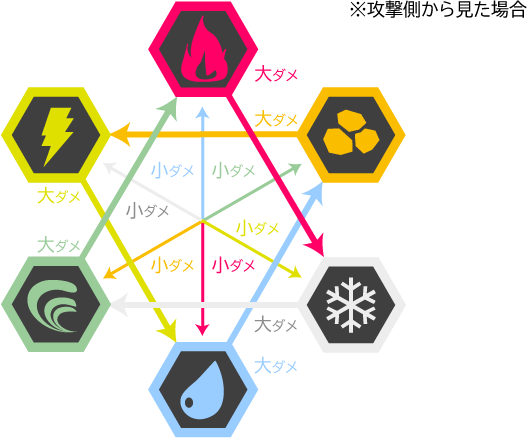 光←→闇は互いに相克しますが、その他はこんな感じです。