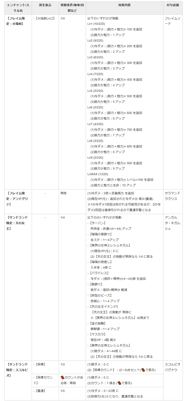 | フレイムソード | 【フレイム限定:火焔剣】 | 発動表示及び、参照ステータス更新(腕力+敏捷 → 腕力+魅力) |