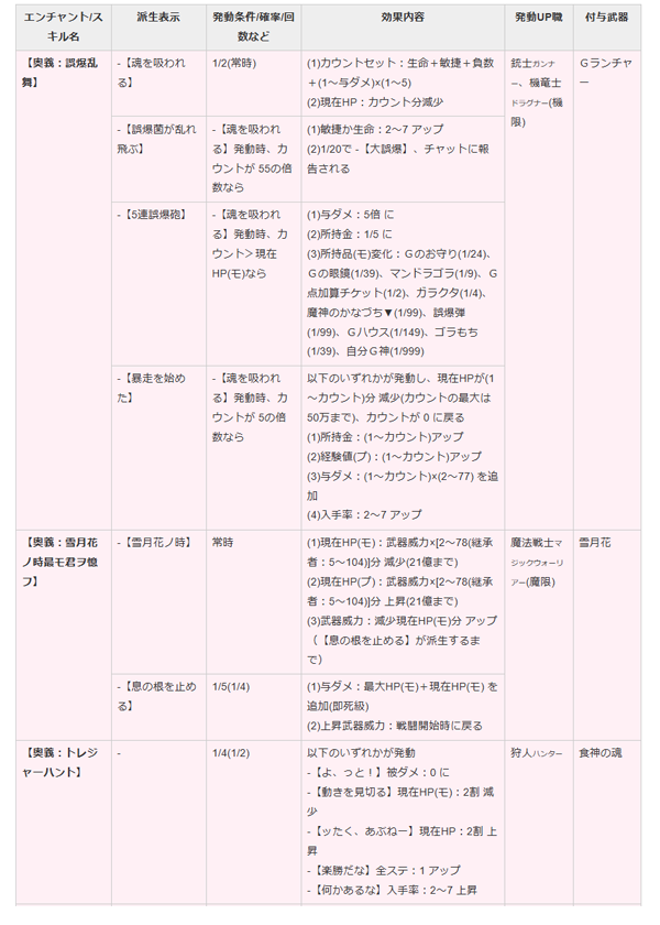 | Gランチャー | 【奥義:誤爆乱舞】 | 表示及び内容更新(与ダメアップ・入手率アップ等) |