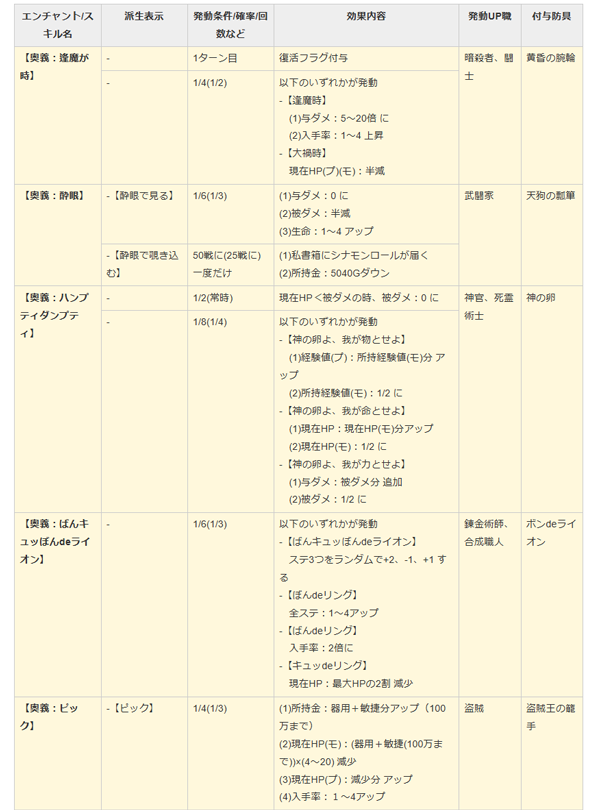 | 盗賊王の籠手 | 【奥義:ピック】 | 表示及び内容更新(参照ステ(器用+魅力)→(器用+敏捷) ・倍率アップ等) |