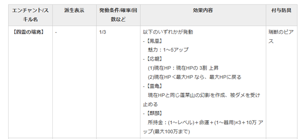 | Hガントレット | 【奥義:マクスペル】 | → 瑞獣のピアス【四霊の瑞兆】 発動表示更新、一般武器化(シークレットレア、仙願玉交換に)、現在HP>最大HPなら、現在HPに戻される部分と、所持金アップの際は与ダメ0となっていたものを修正 |